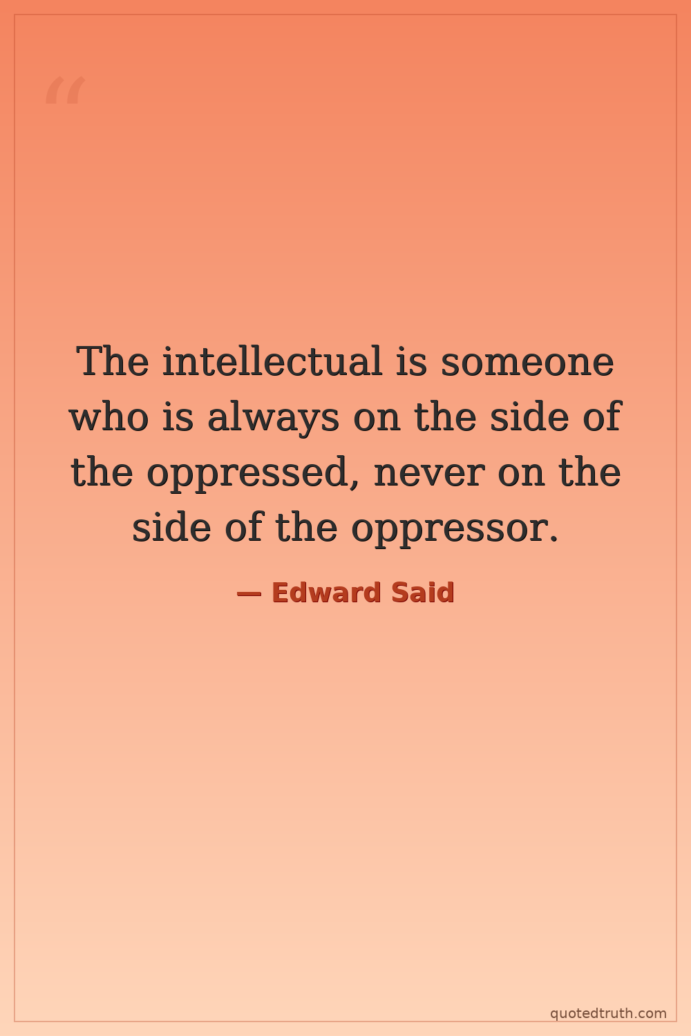 The intellectual is someone who is always on the side of the oppressed, never on the side of the oppressor.