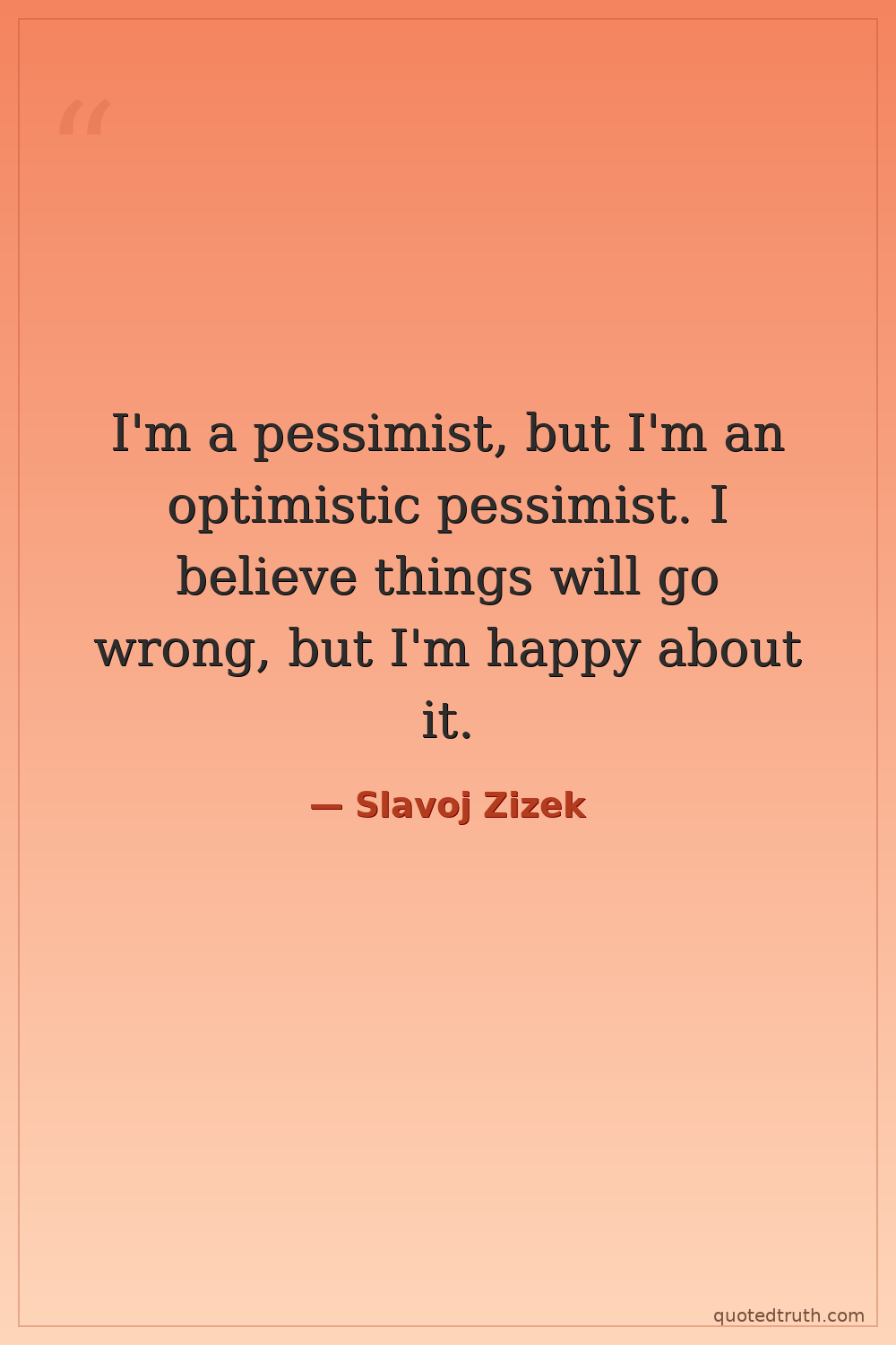 I'm a pessimist, but I'm an optimistic pessimist. I believe things will go wrong, but I'm happy about it.