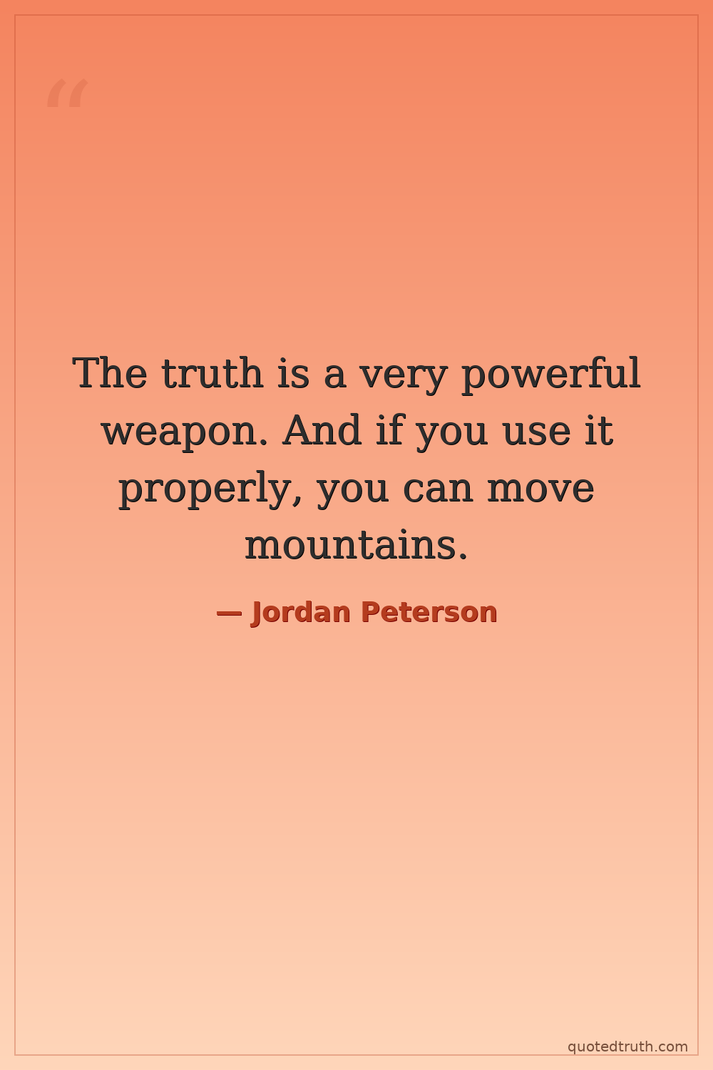 The truth is a very powerful weapon. And if you use it properly, you can move mountains.