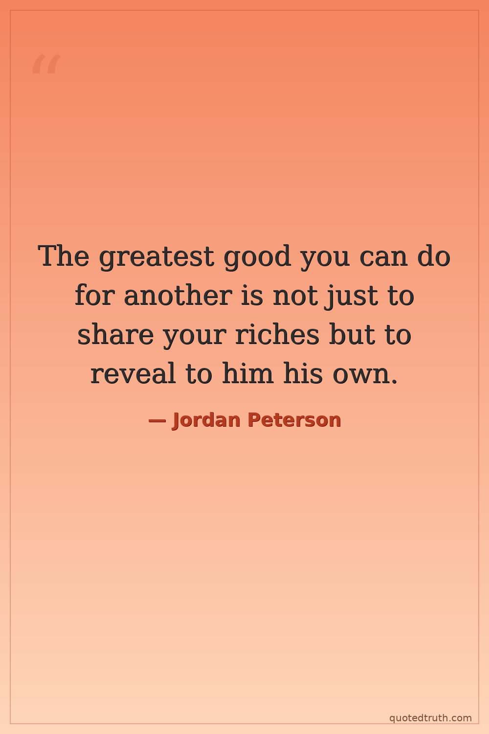 The greatest good you can do for another is not just to share your riches but to reveal to him his own.