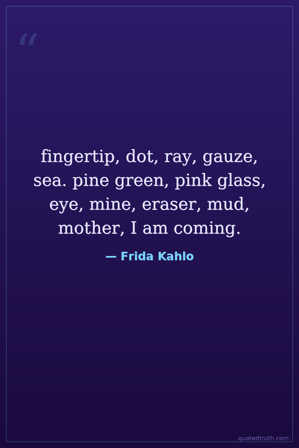 fingertip, dot, ray, gauze, sea. pine green, pink glass, eye, mine, eraser, mud, mother, I am coming.