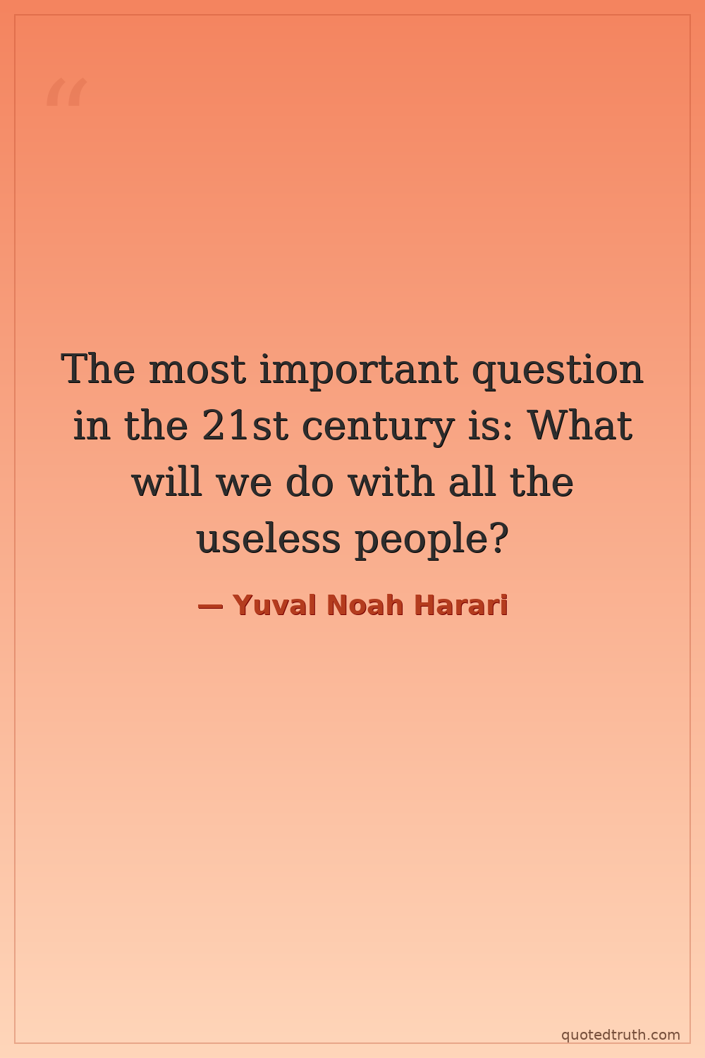 The most important question in the 21st century is: What will we do with all the useless people?