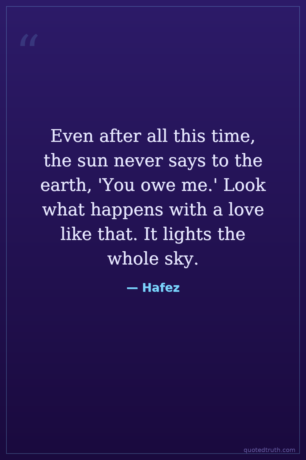 Even after all this time, the sun never says to the earth, 'You owe me.' Look what happens with a love like that. It lights the whole sky.