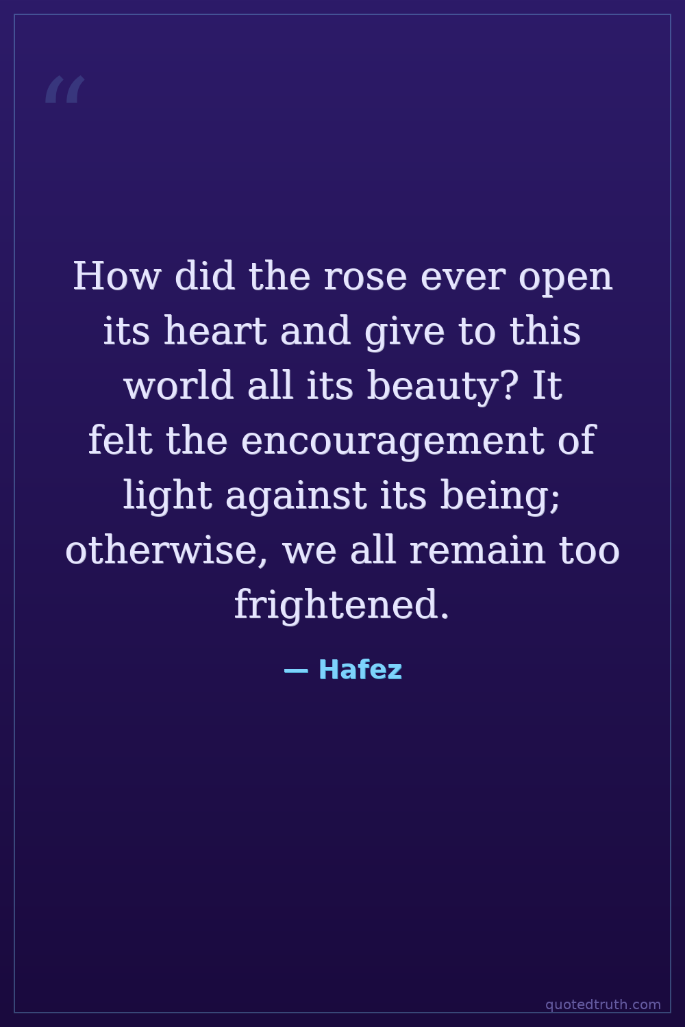 How did the rose ever open its heart and give to this world all its beauty? It felt the encouragement of light against its being; otherwise, we all remain too frightened.