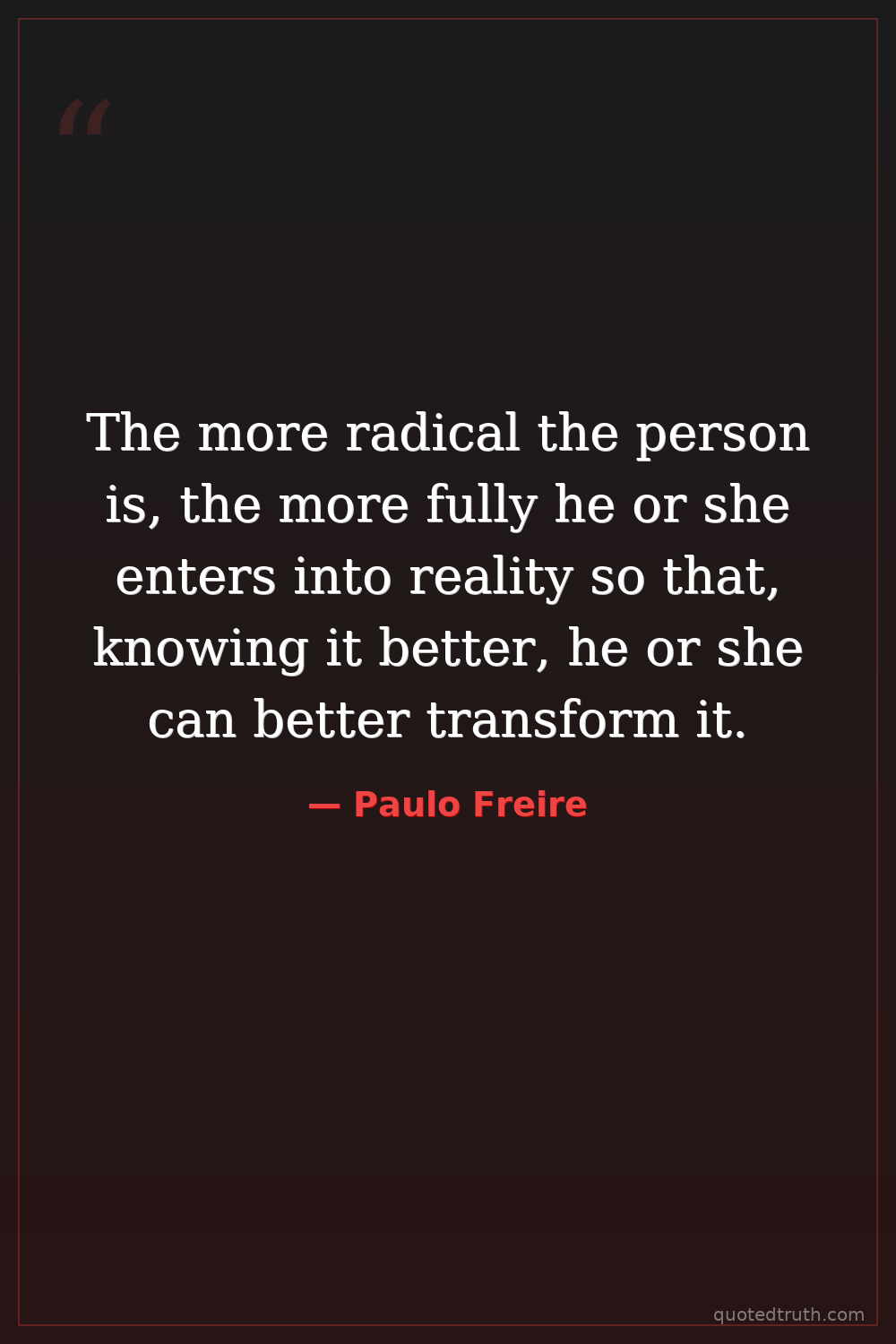 The more radical the person is, the more fully he or she enters into reality so that, knowing it better, he or she can better transform it.