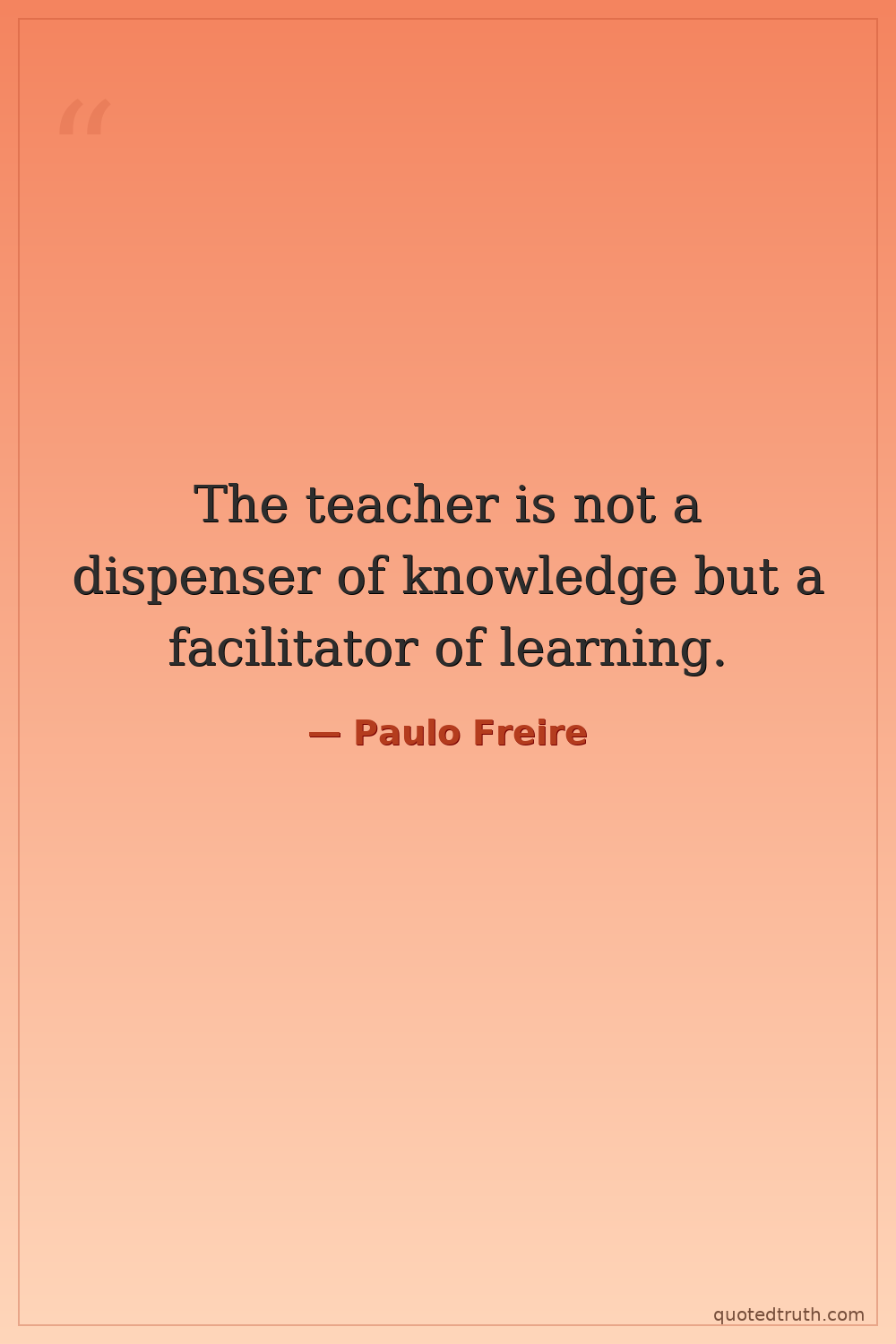 The teacher is not a dispenser of knowledge but a facilitator of learning.