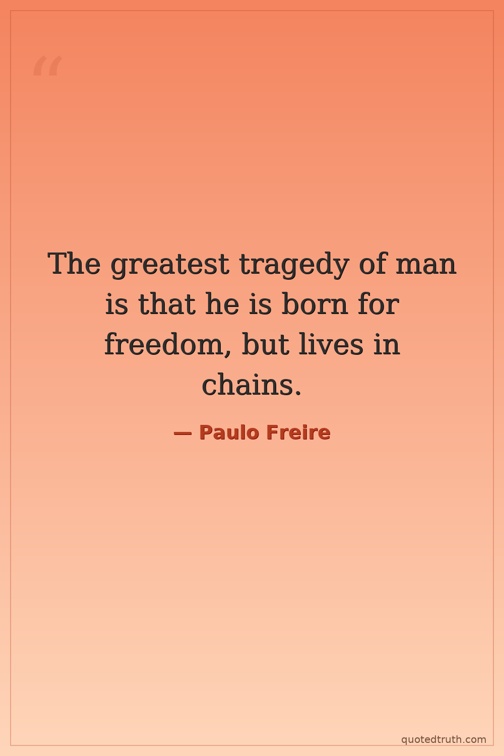 The greatest tragedy of man is that he is born for freedom, but lives in chains.