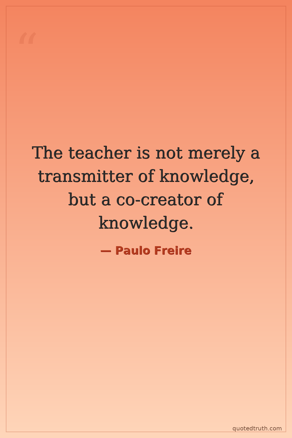 The teacher is not merely a transmitter of knowledge, but a co-creator of knowledge.