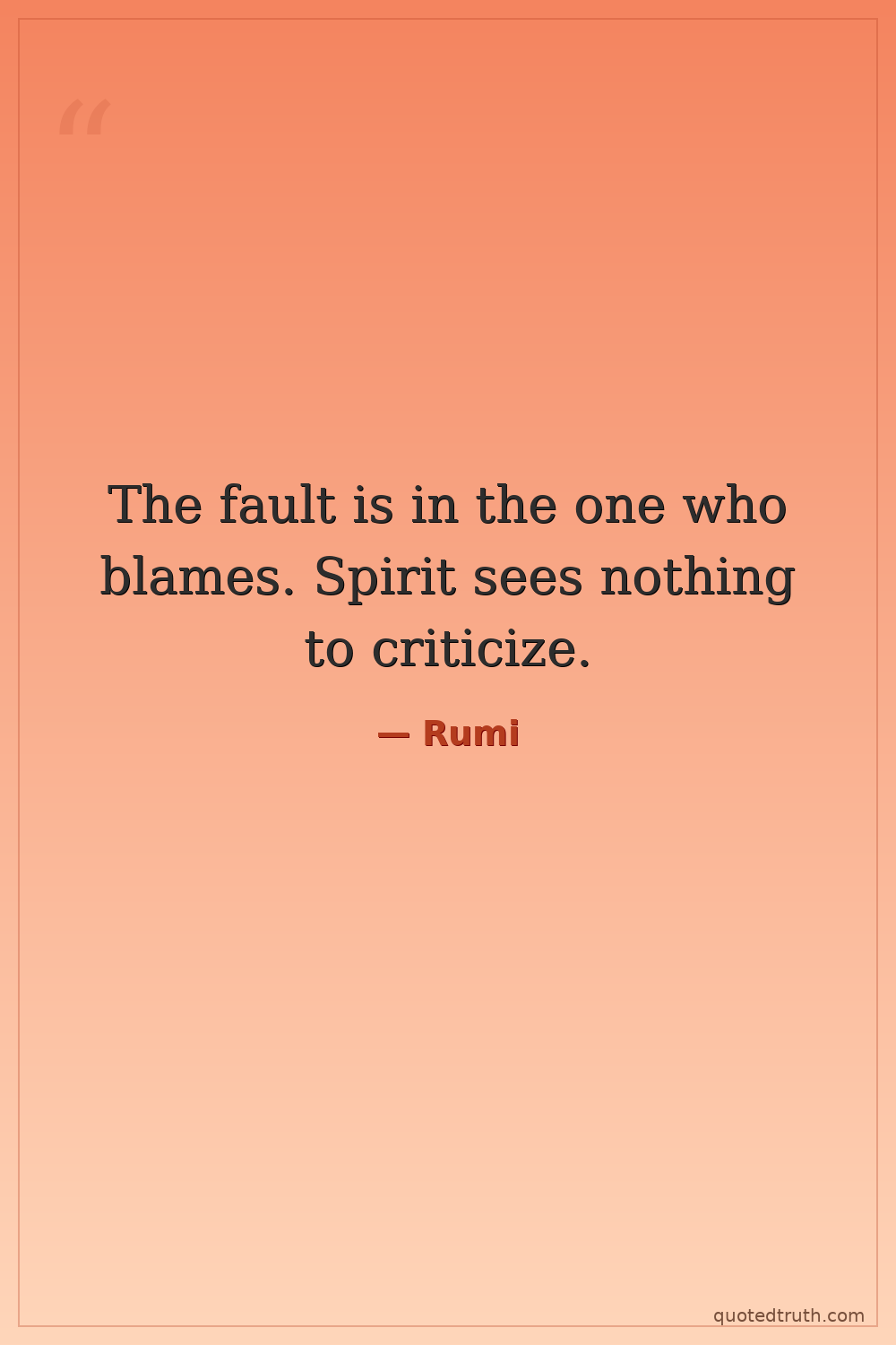 The fault is in the one who blames. Spirit sees nothing to criticize.