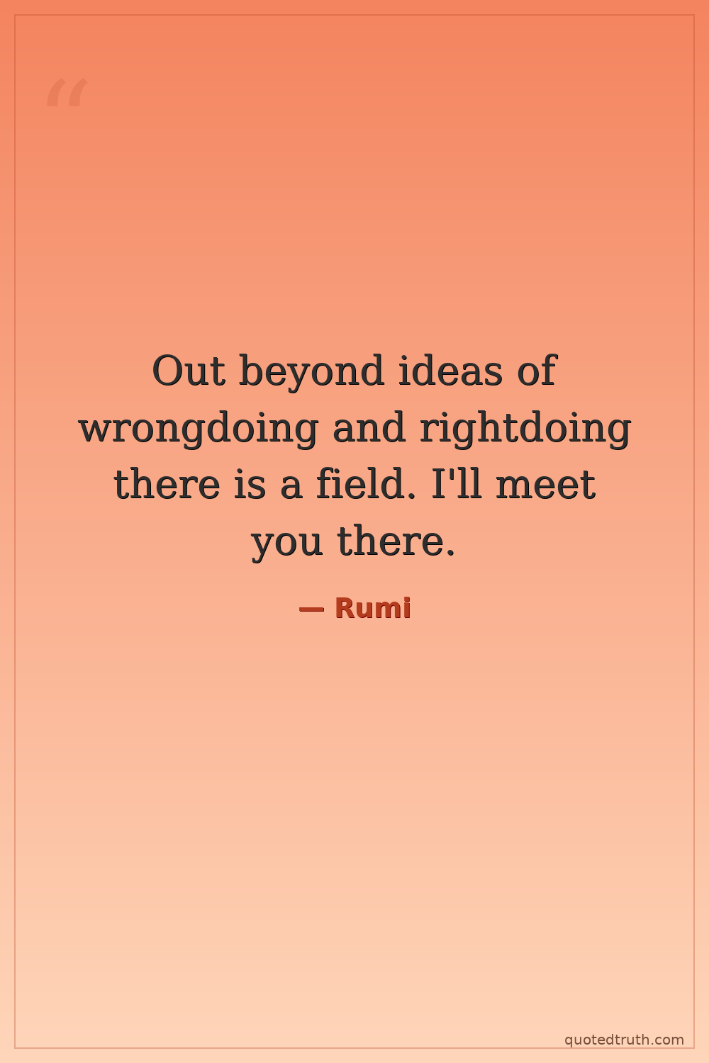 Out beyond ideas of wrongdoing and rightdoing there is a field. I'll meet you there.