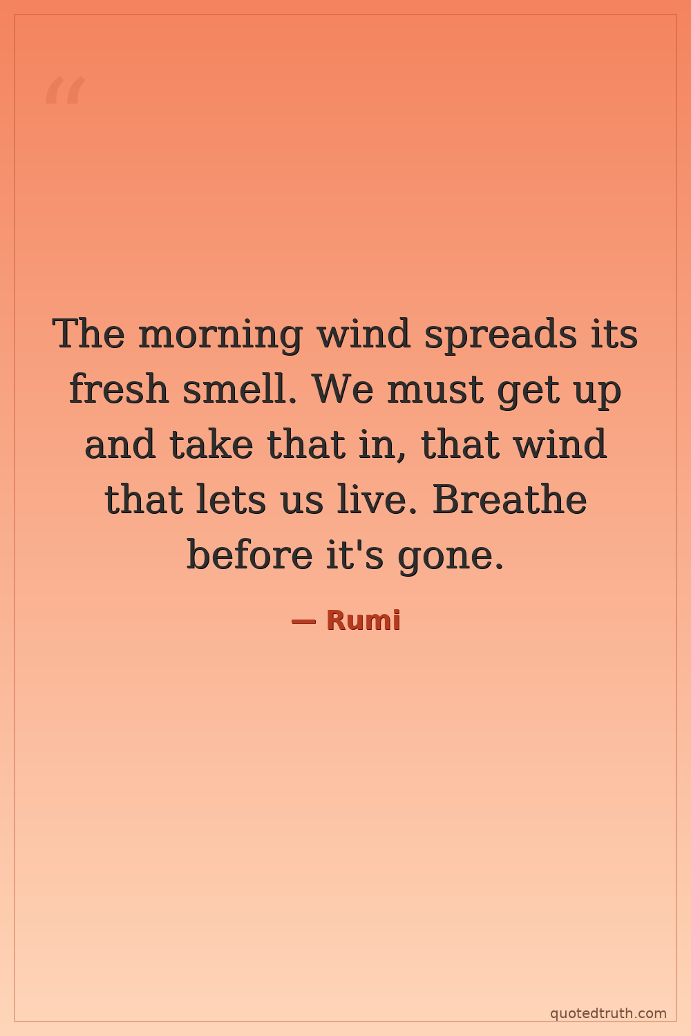 The morning wind spreads its fresh smell. We must get up and take that in, that wind that lets us live. Breathe before it's gone.