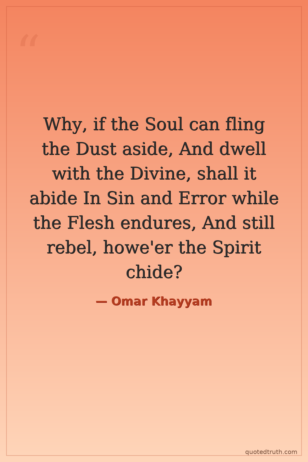 Why, if the Soul can fling the Dust aside, And dwell with the Divine, shall it abide In Sin and Error while the Flesh endures, And still rebel, howe'er the Spirit chide?