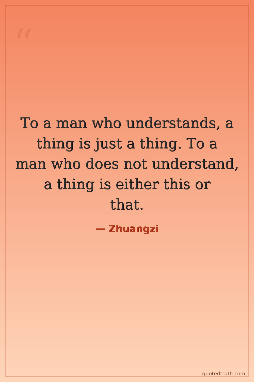 To a man who understands, a thing is just a thing. To a man who does not understand, a thing is either this or that.