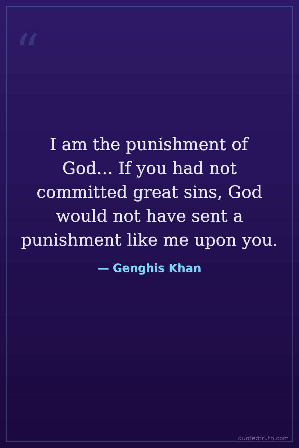 I am the punishment of God... If you had not committed great sins, God would not have sent a punishment like me upon you.