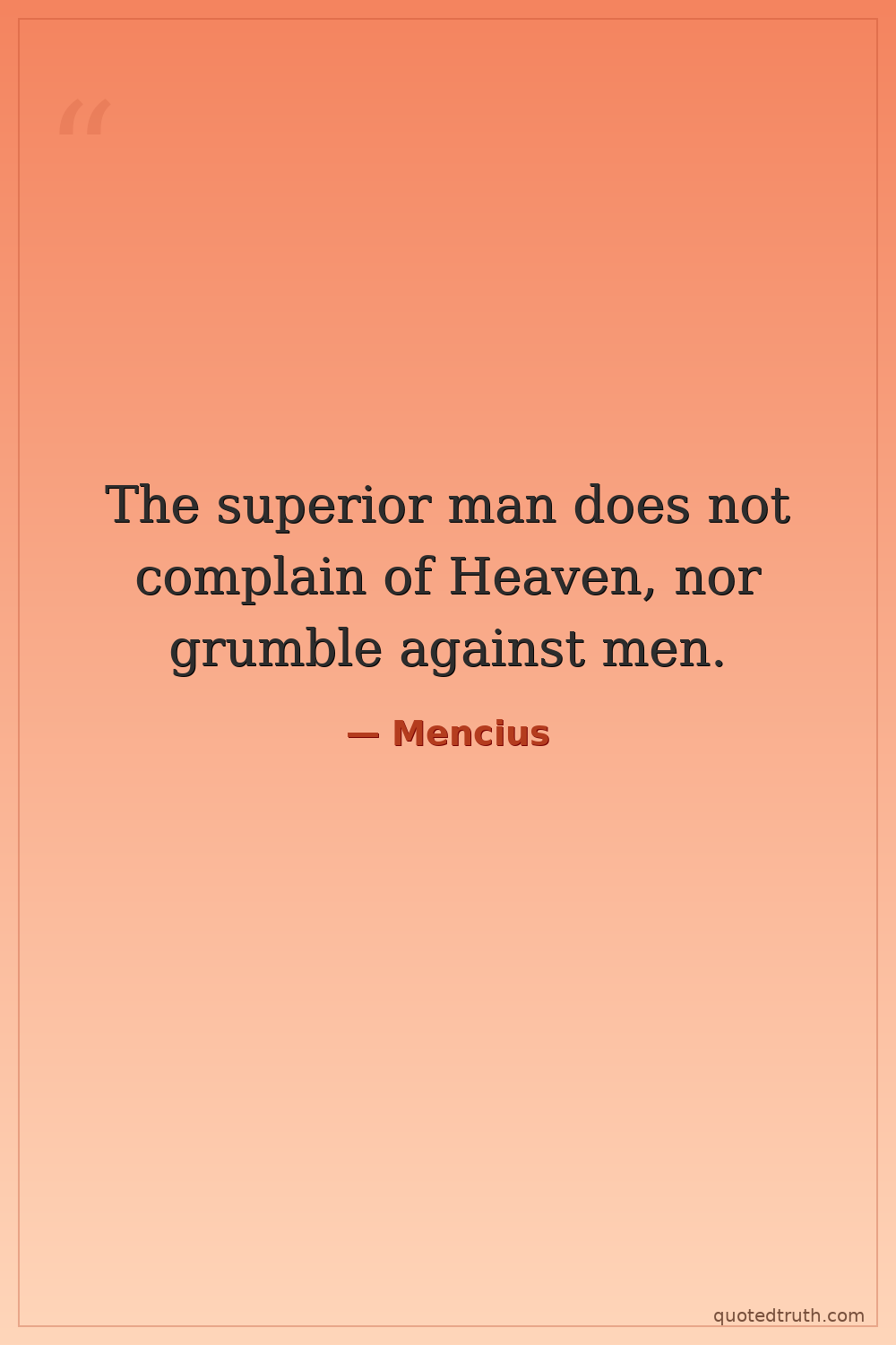 The superior man does not complain of Heaven, nor grumble against men.