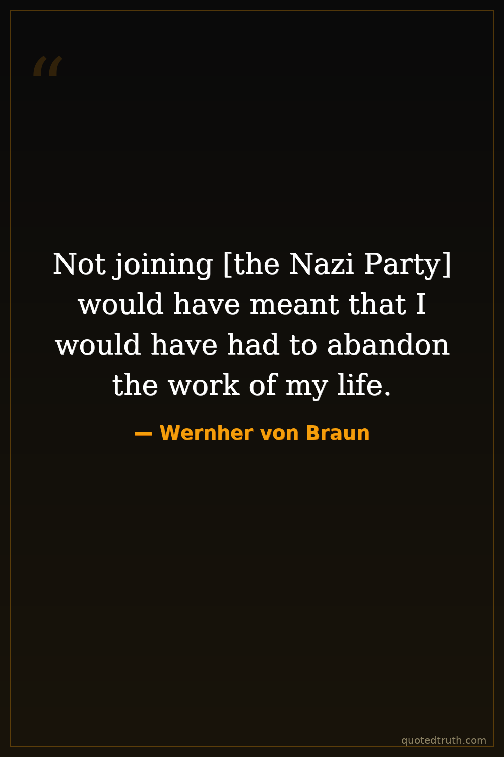 His explanation for joining the Nazi Party, presenting it as a pragmatic decision to continue his rocketry research.