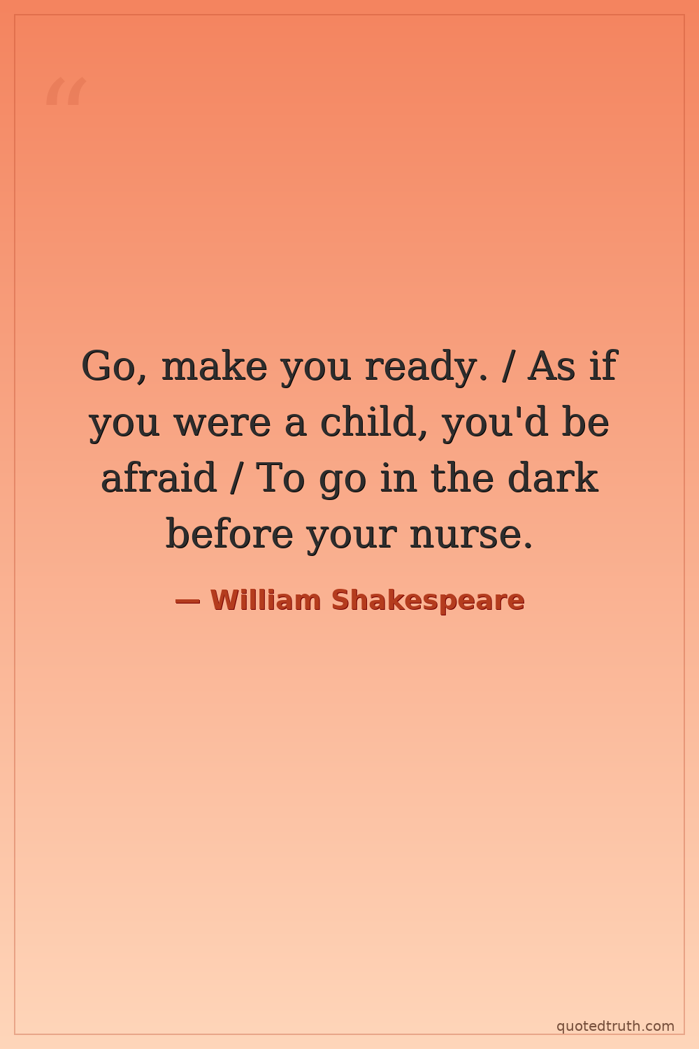 Go, make you ready. / As if you were a child, you'd be afraid / To go in the dark before your nurse.