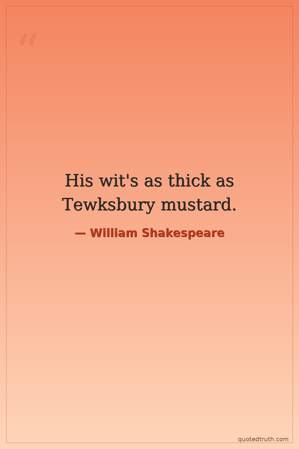 His wit's as thick as Tewksbury mustard.