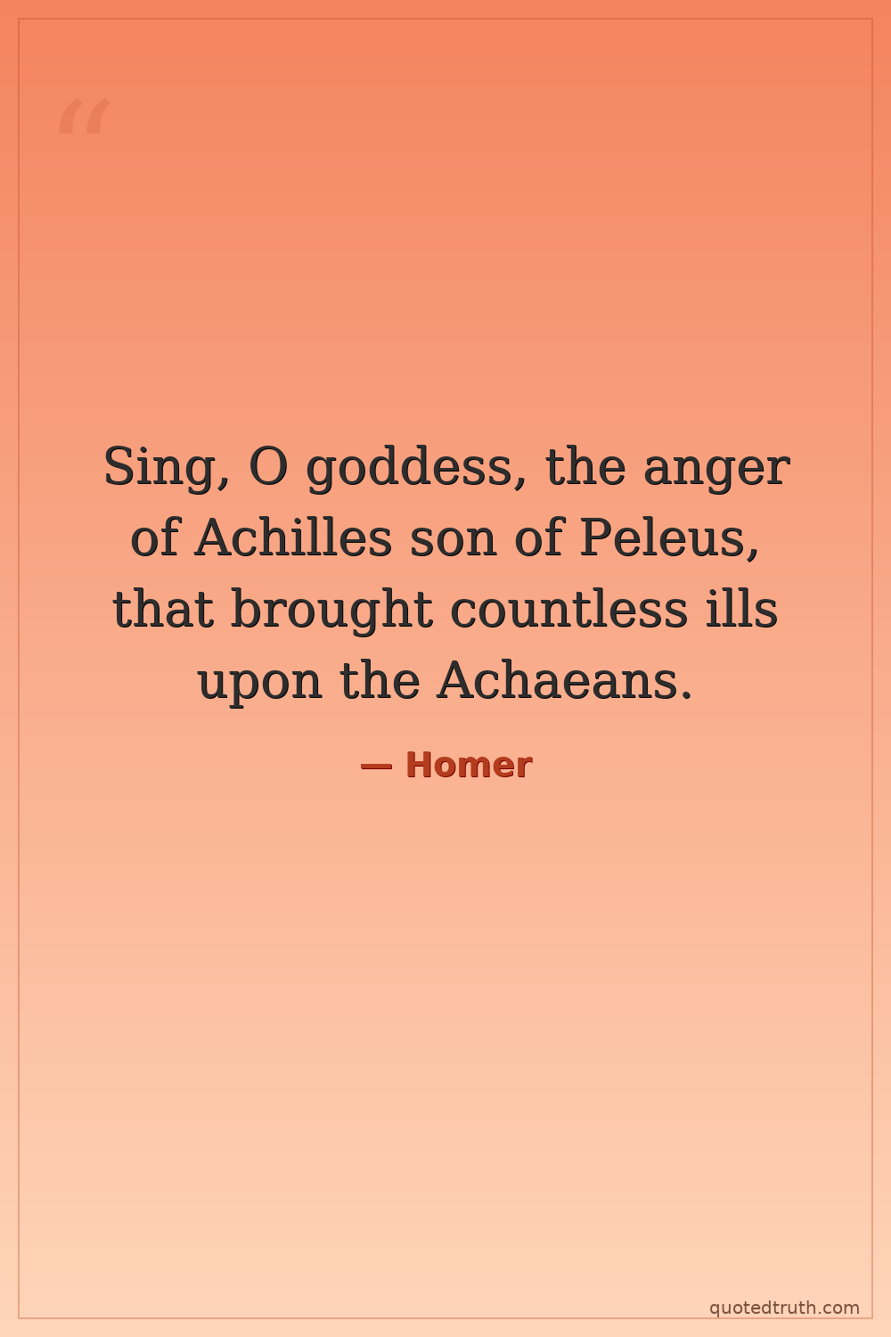Sing, O goddess, the anger of Achilles son of Peleus, that brought countless ills upon the Achaeans.