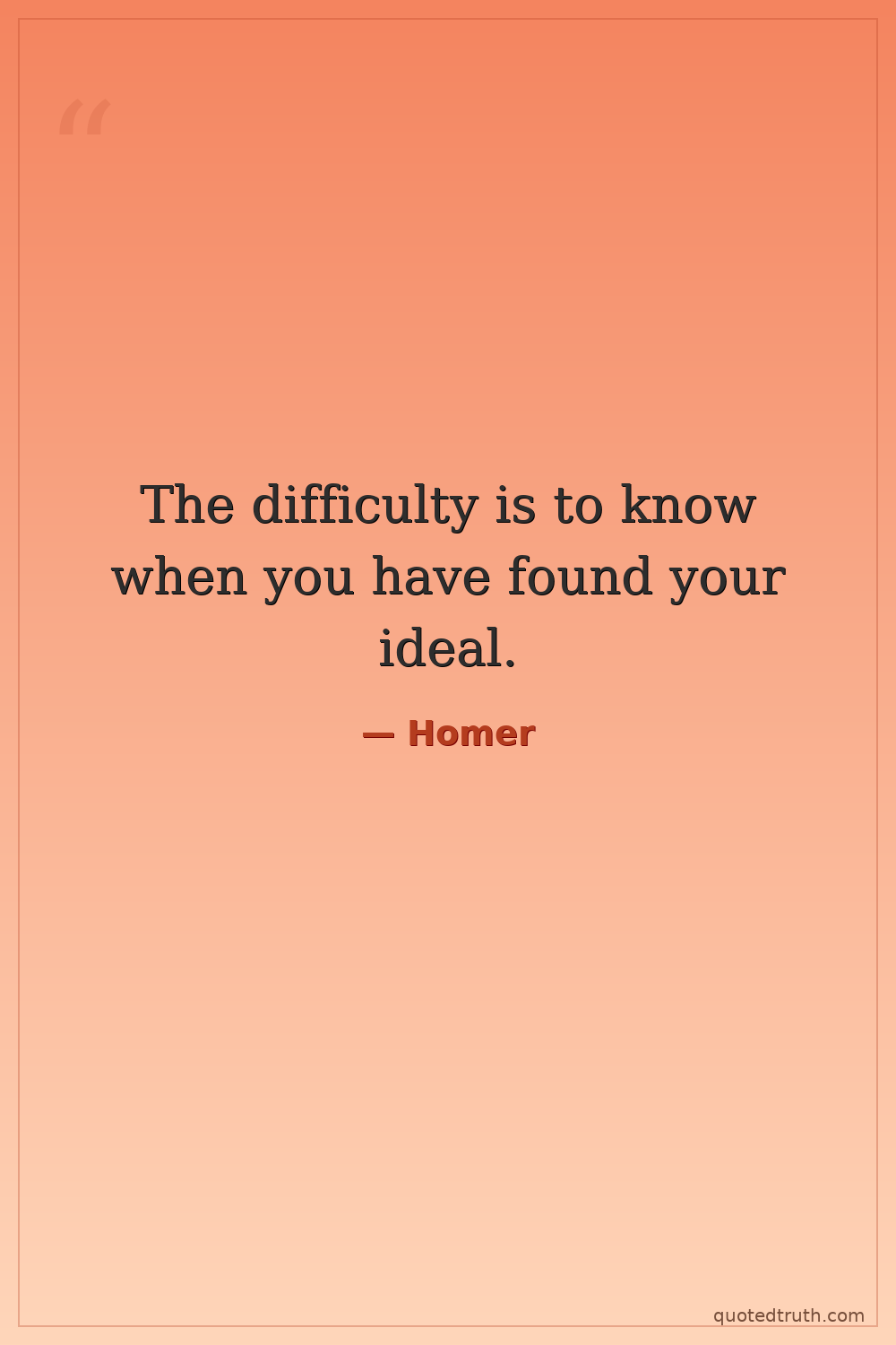 The difficulty is to know when you have found your ideal.