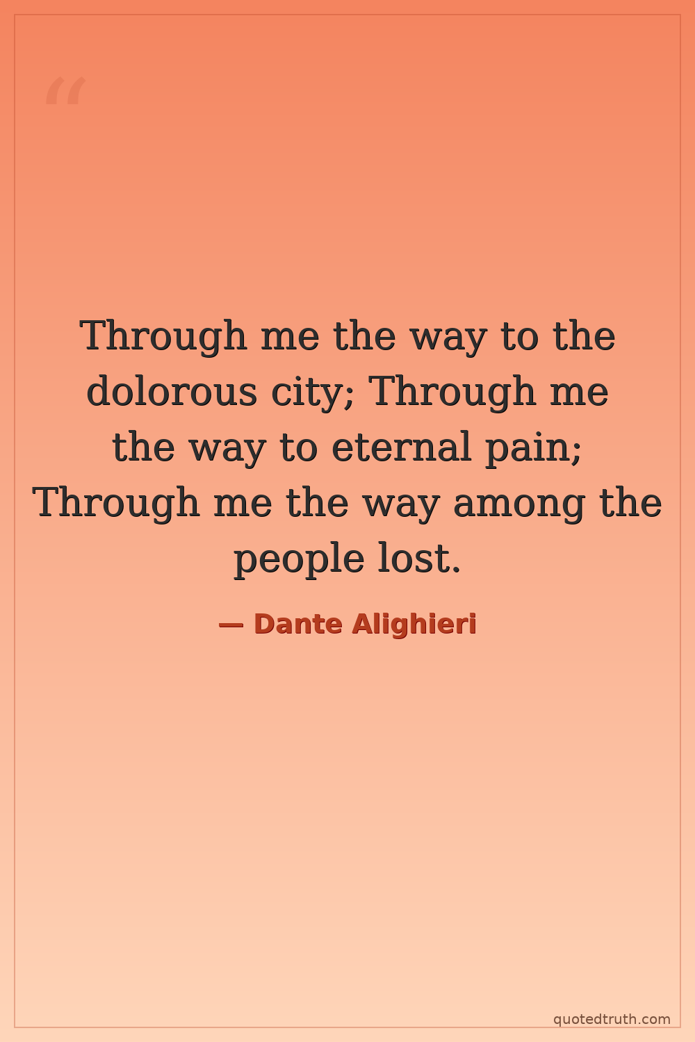 Through me the way to the dolorous city; Through me the way to eternal pain; Through me the way among the people lost.