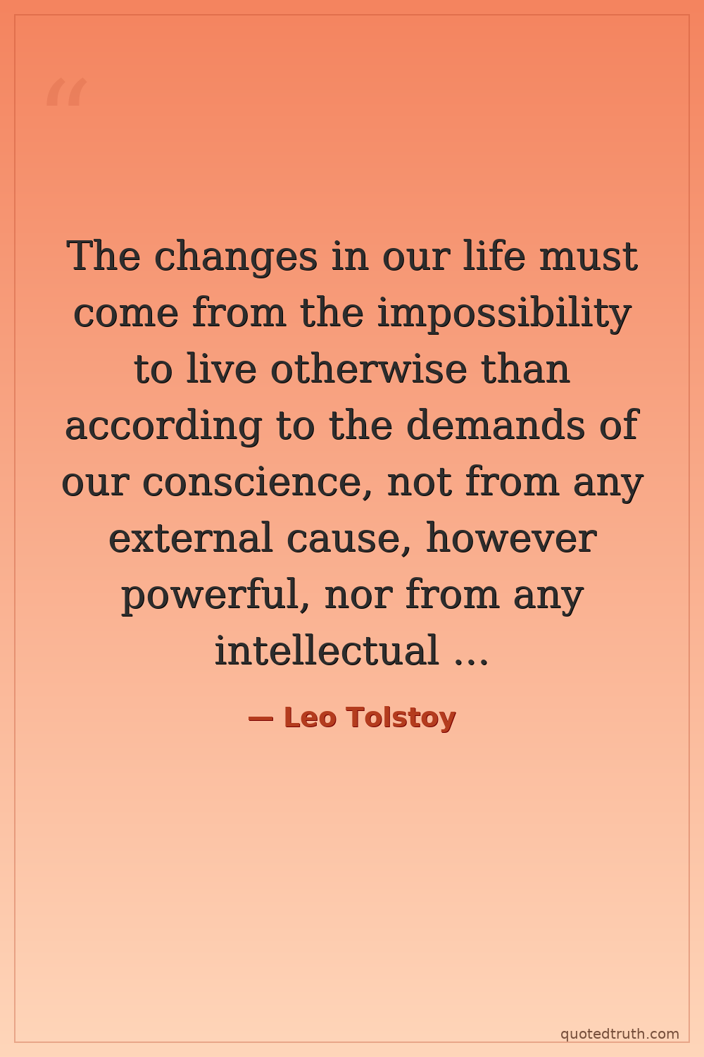 The changes in our life must come from the impossibility to live otherwise than according to the demands of our conscience, not from any external cause, however powerful, nor from any intellectual decision.