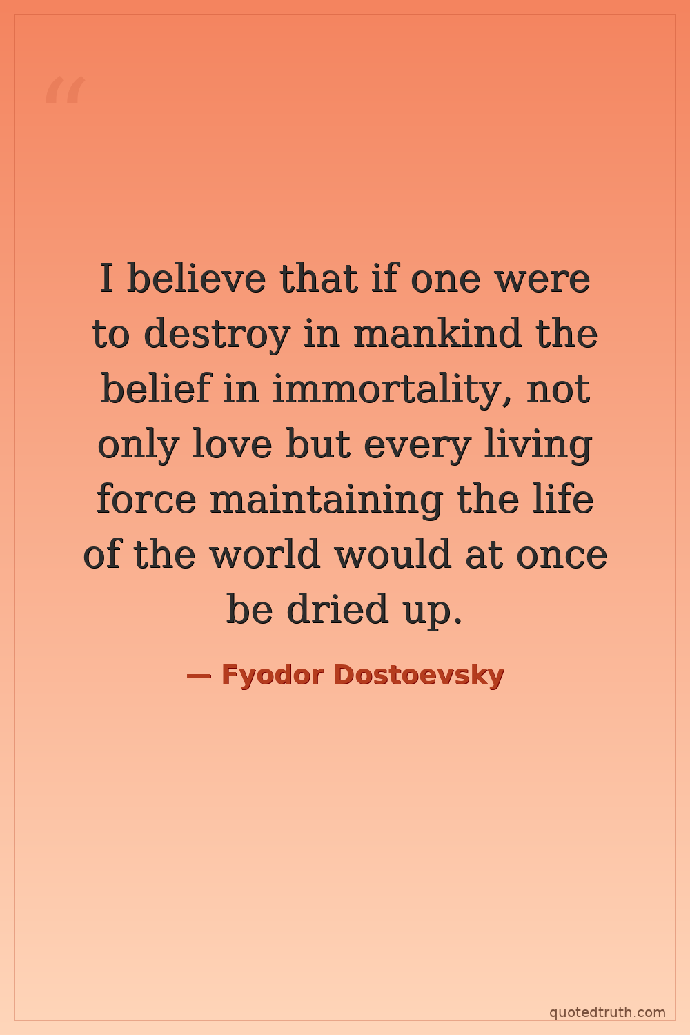 I believe that if one were to destroy in mankind the belief in immortality, not only love but every living force maintaining the life of the world would at once be dried up.