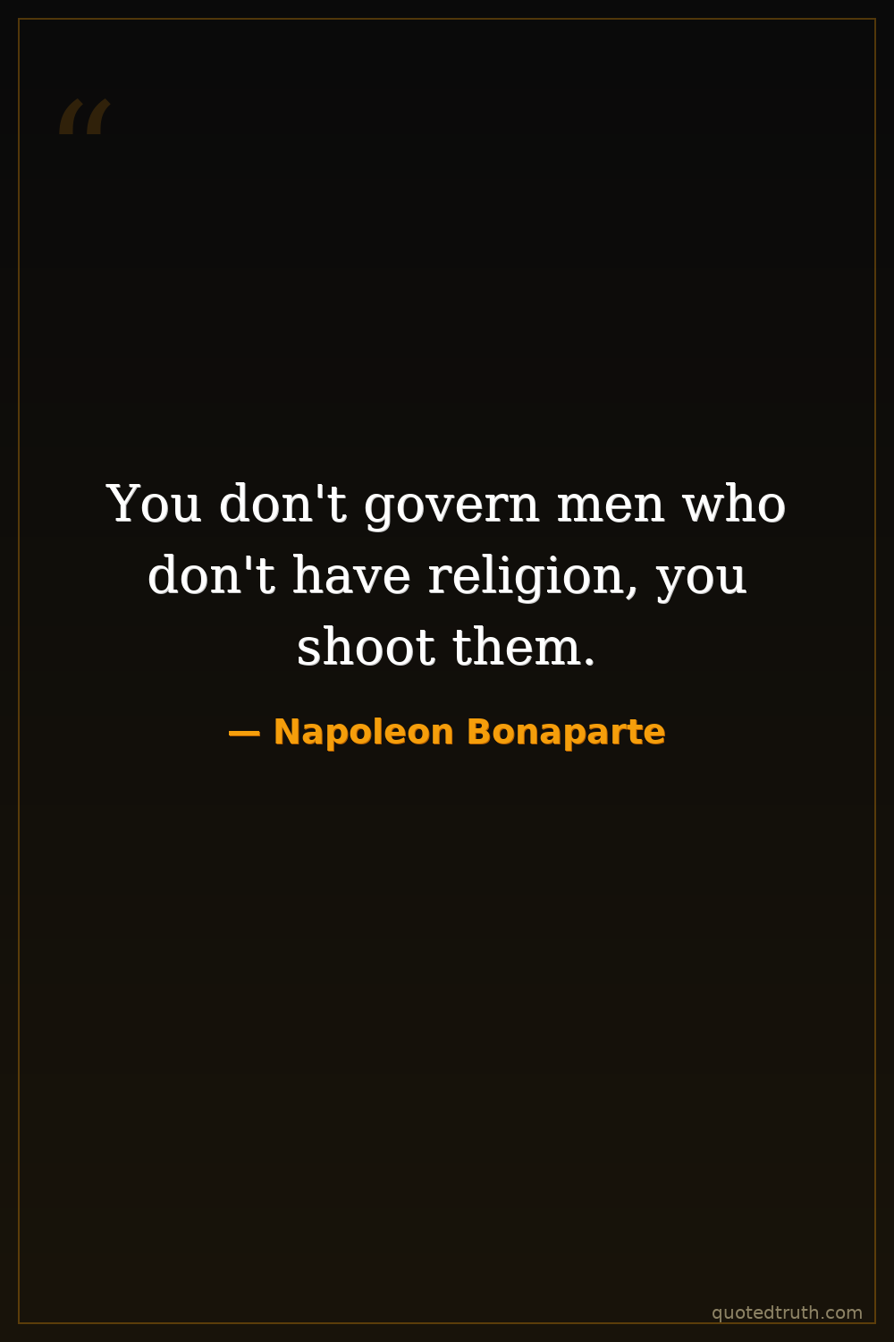 You don't govern men who don't have religion, you shoot them.