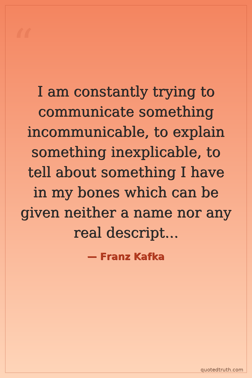 I am constantly trying to communicate something incommunicable, to explain something inexplicable, to tell about something I have in my bones which can be given neither a name nor any real description.