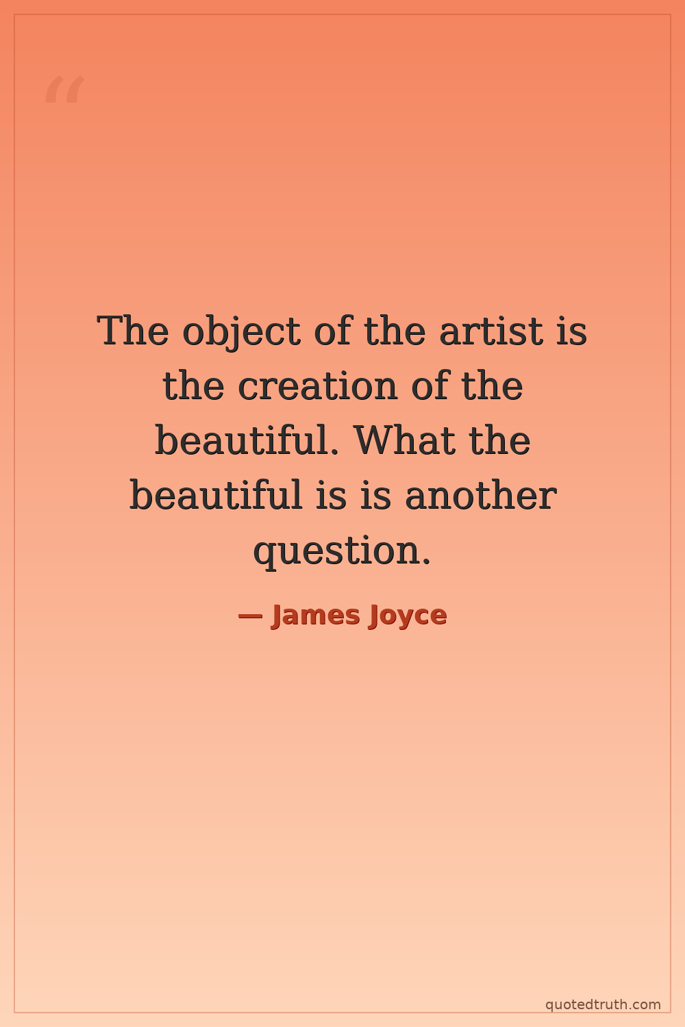 The object of the artist is the creation of the beautiful. What the beautiful is is another question.