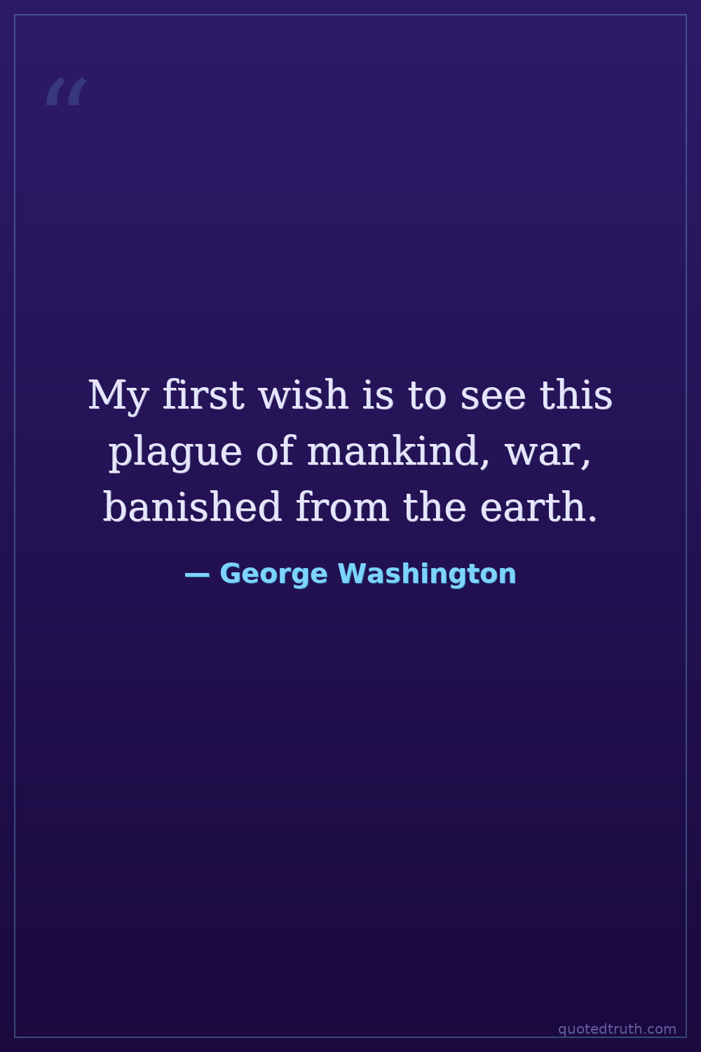 My first wish is to see this plague of mankind, war, banished from the earth.