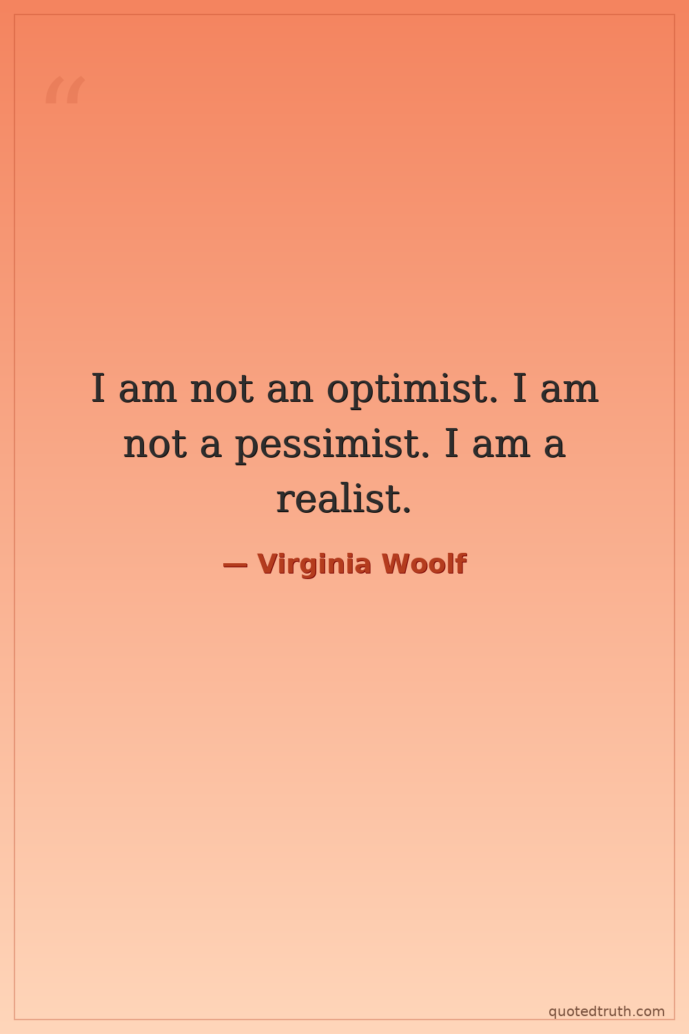 I am not an optimist. I am not a pessimist. I am a realist.