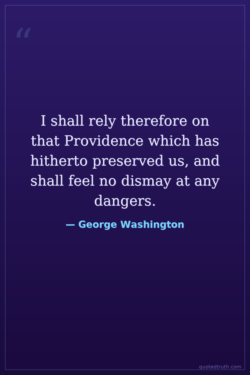I shall rely therefore on that Providence which has hitherto preserved us, and shall feel no dismay at any dangers.