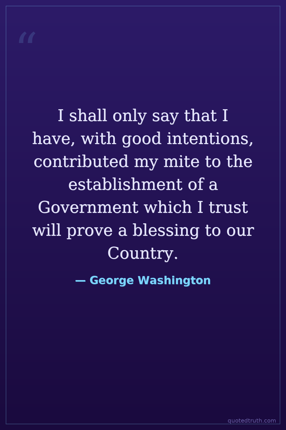 I shall only say that I have, with good intentions, contributed my mite to the establishment of a Government which I trust will prove a blessing to our Country.