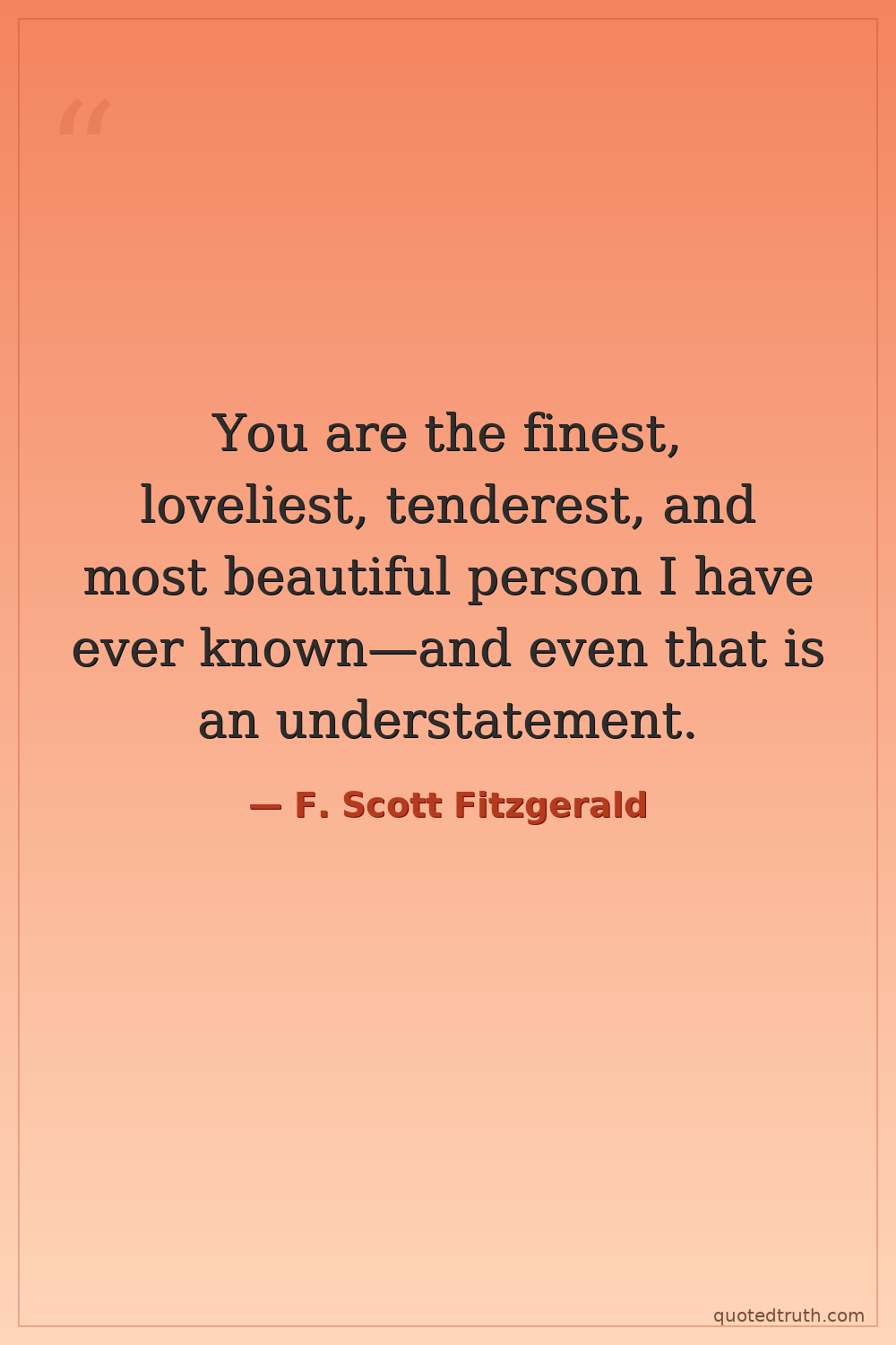 You are the finest, loveliest, tenderest, and most beautiful person I have ever known—and even that is an understatement.