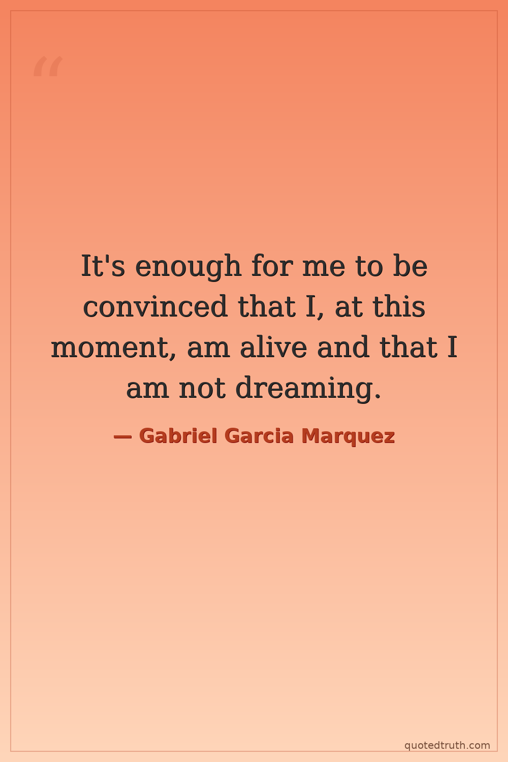It's enough for me to be convinced that I, at this moment, am alive and that I am not dreaming.