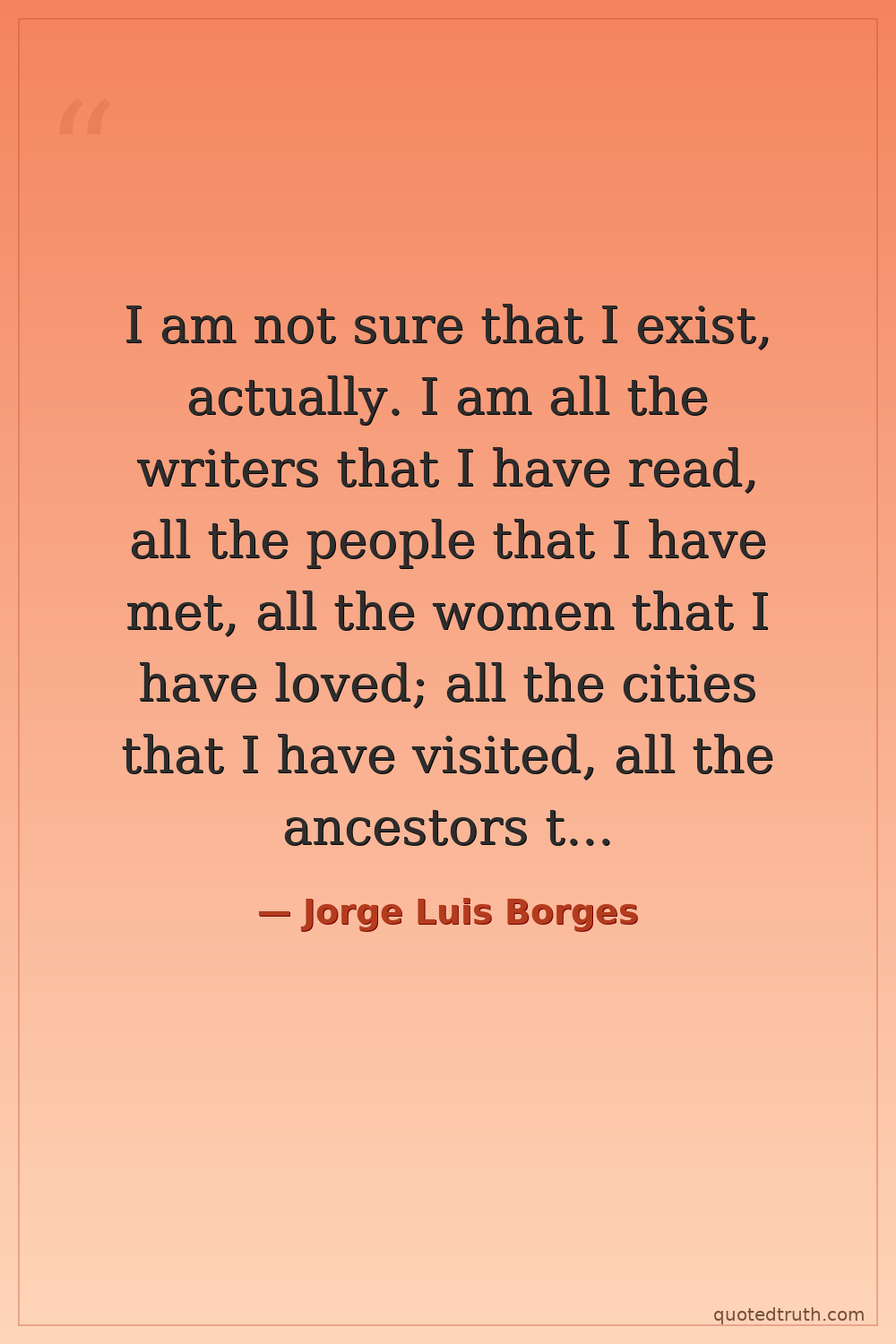 I am not sure that I exist, actually. I am all the writers that I have read, all the people that I have met, all the women that I have loved; all the cities that I have visited, all the ancestors that I have had.