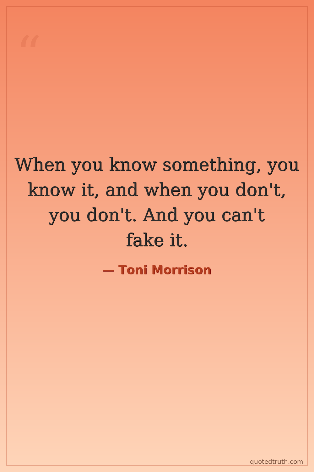 When you know something, you know it, and when you don't, you don't. And you can't fake it.
