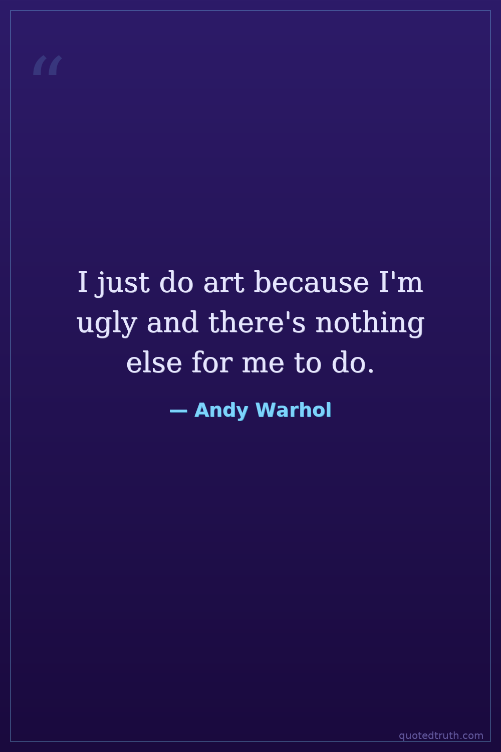 I just do art because I'm ugly and there's nothing else for me to do.