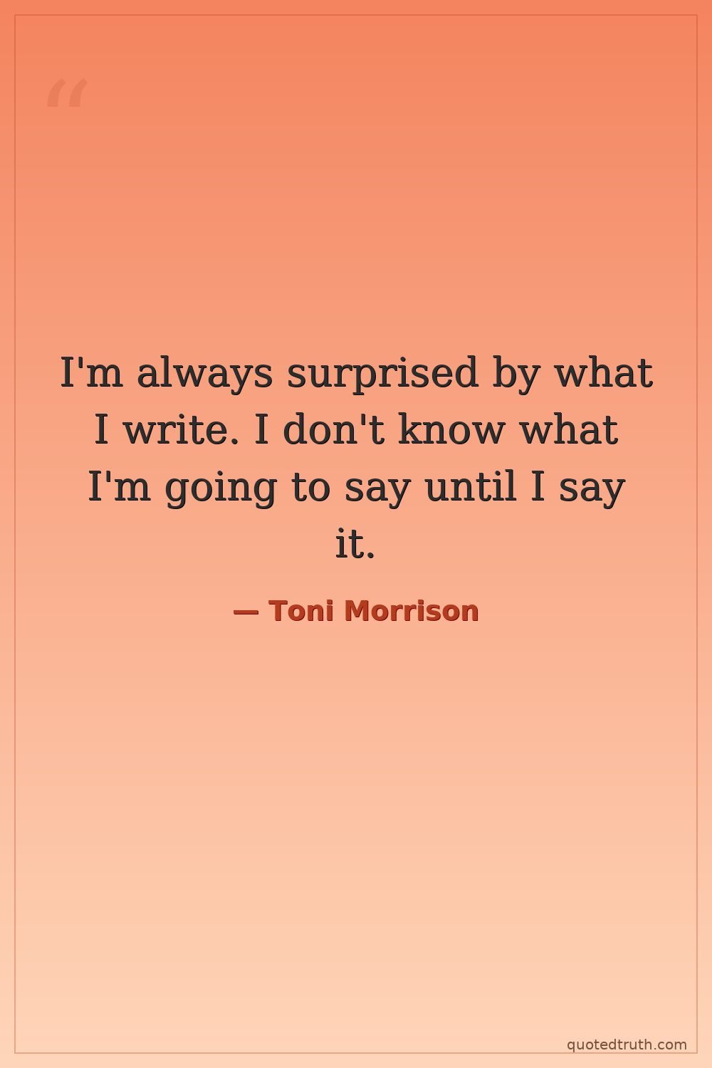 I'm always surprised by what I write. I don't know what I'm going to say until I say it.