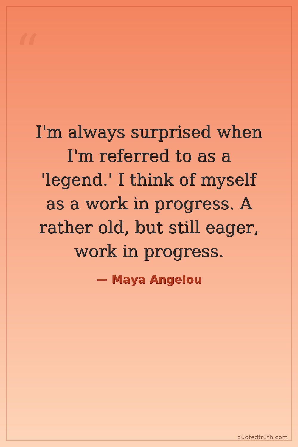 I'm always surprised when I'm referred to as a 'legend.' I think of myself as a work in progress. A rather old, but still eager, work in progress.