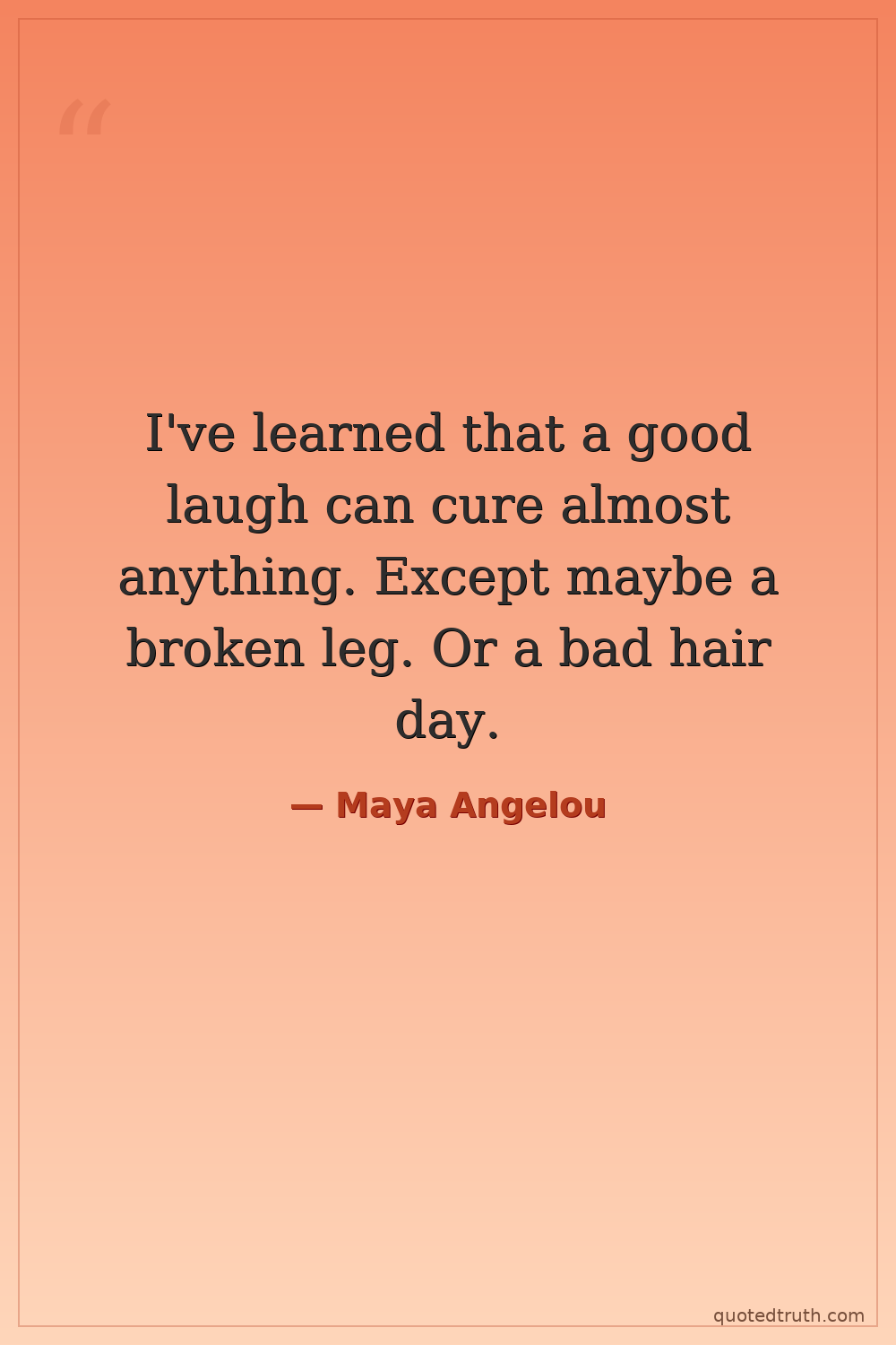 I've learned that a good laugh can cure almost anything. Except maybe a broken leg. Or a bad hair day.