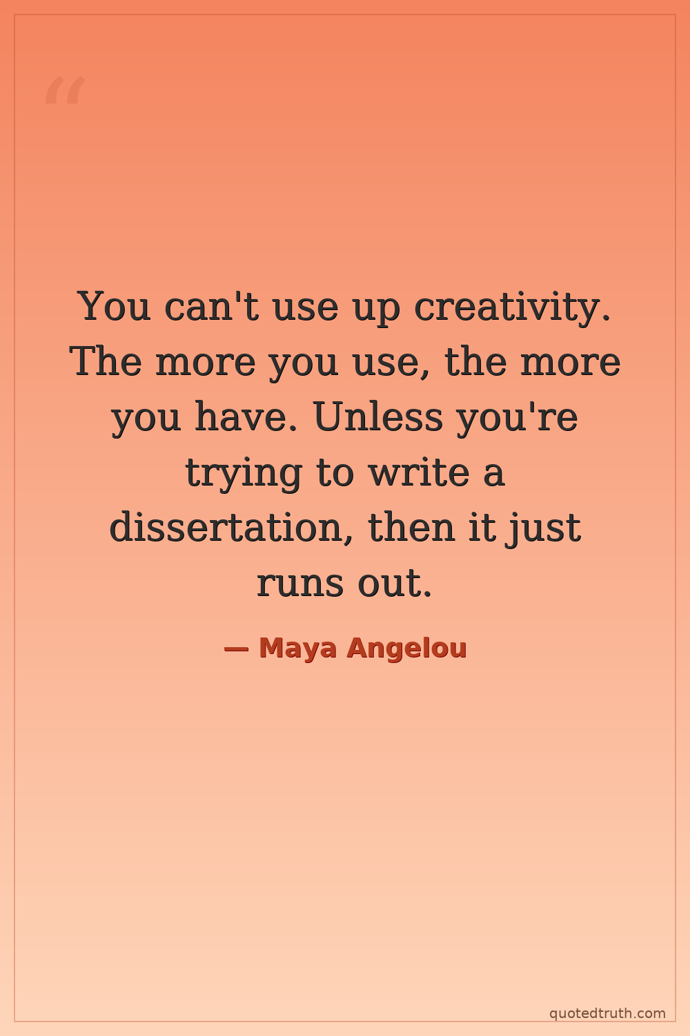 You can't use up creativity. The more you use, the more you have. Unless you're trying to write a dissertation, then it just runs out.