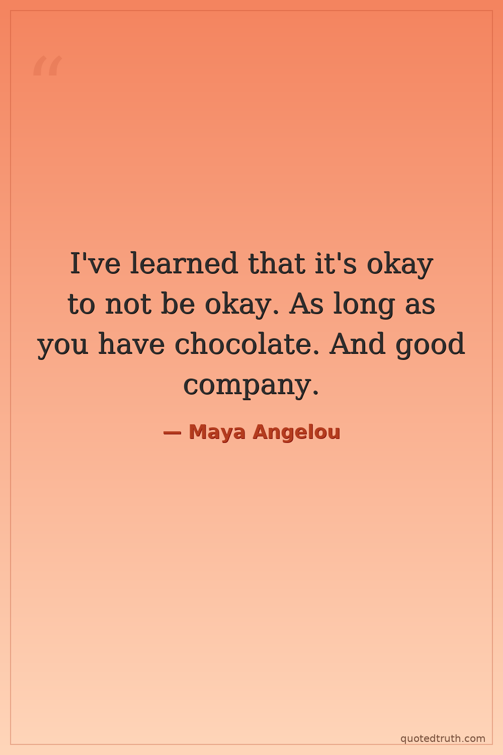 I've learned that it's okay to not be okay. As long as you have chocolate. And good company.