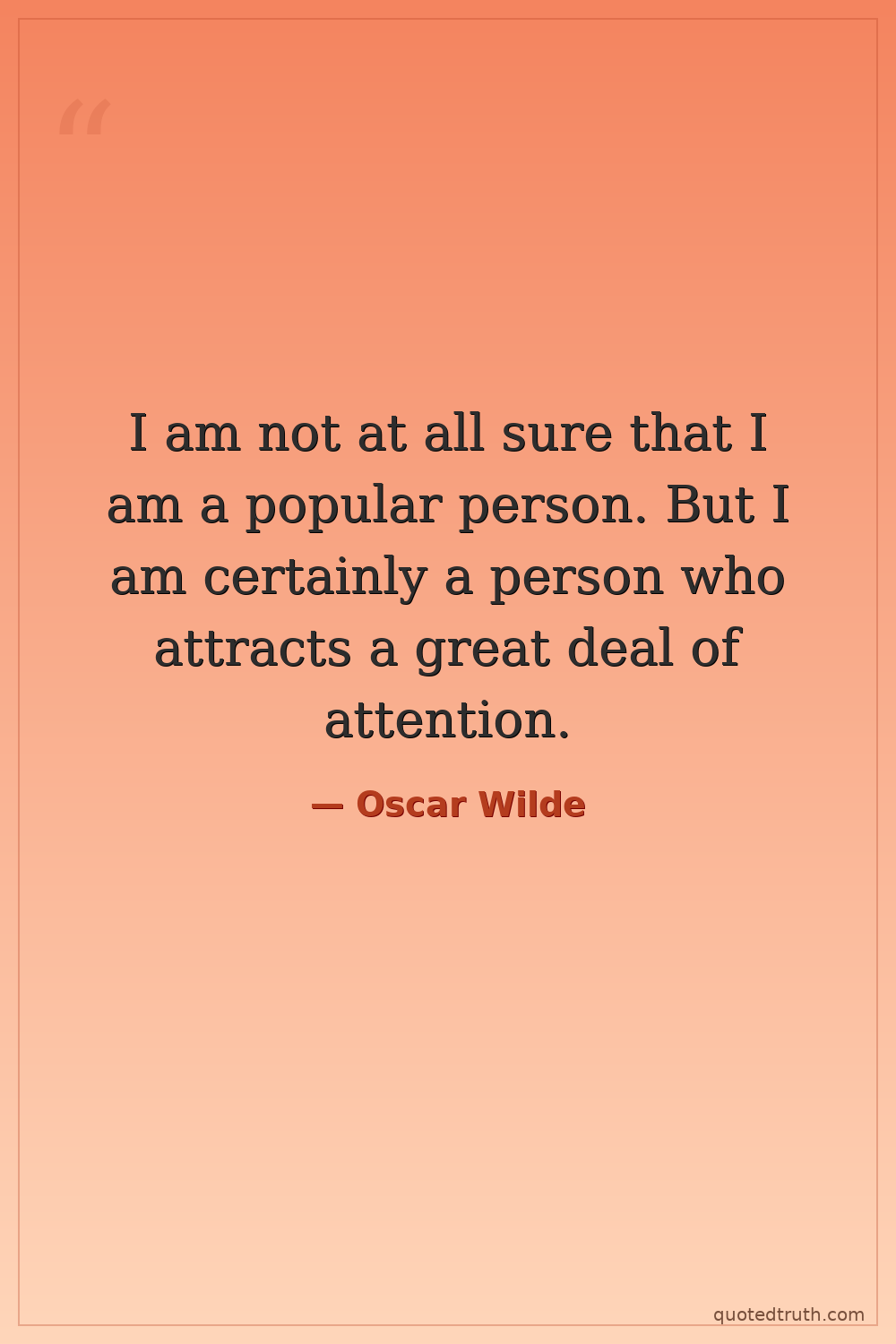 I am not at all sure that I am a popular person. But I am certainly a person who attracts a great deal of attention.