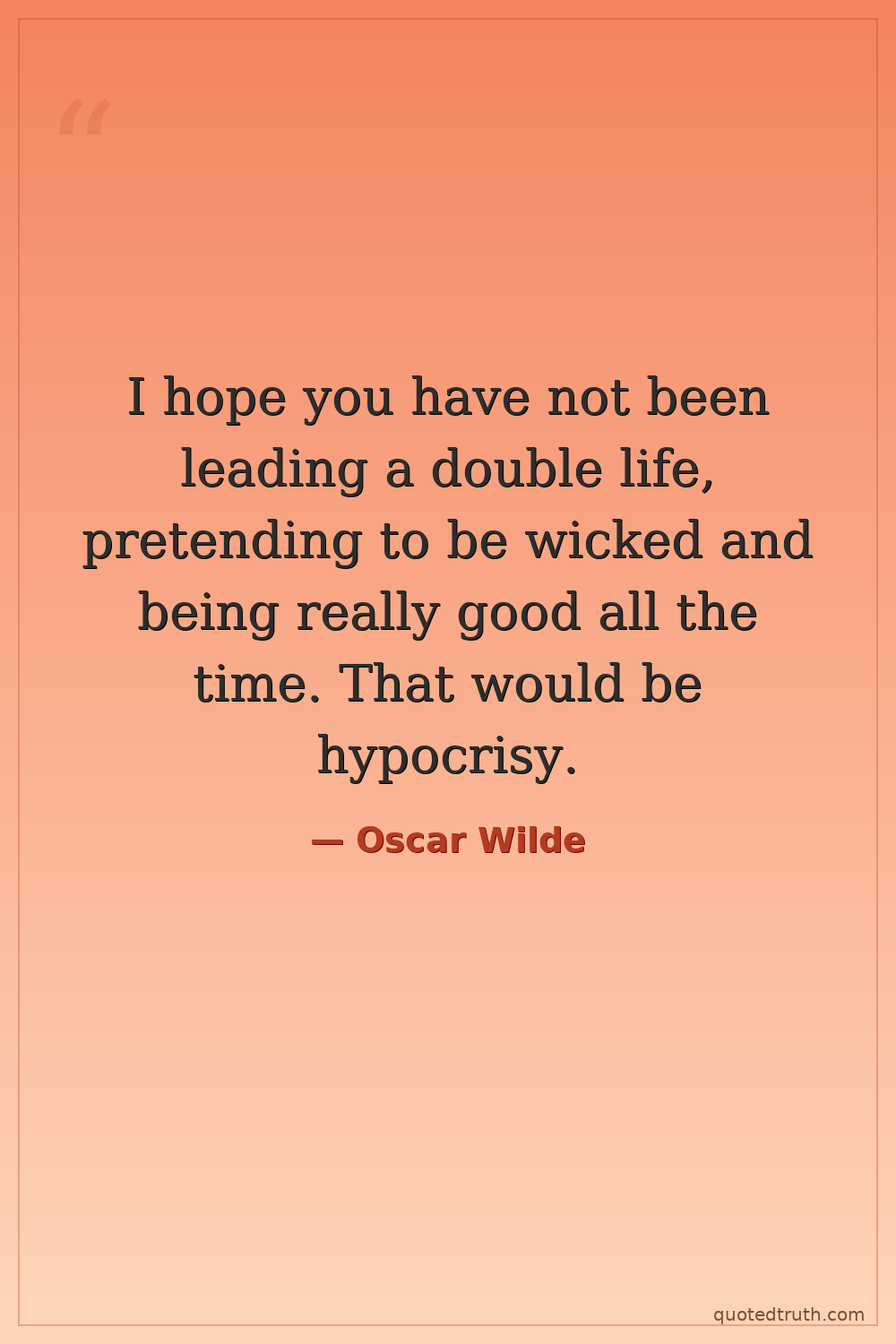 I hope you have not been leading a double life, pretending to be wicked and being really good all the time. That would be hypocrisy.