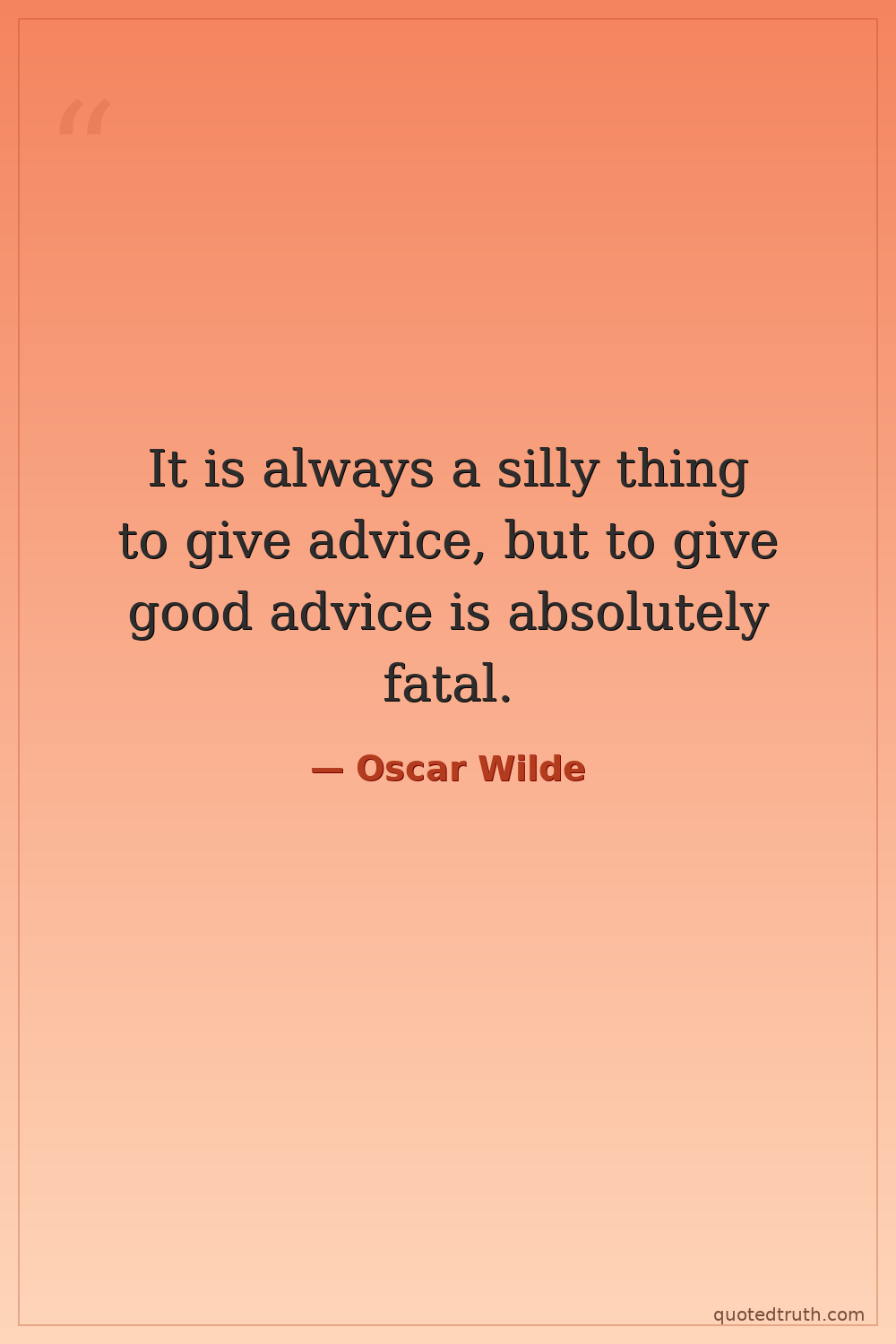 It is always a silly thing to give advice, but to give good advice is absolutely fatal.