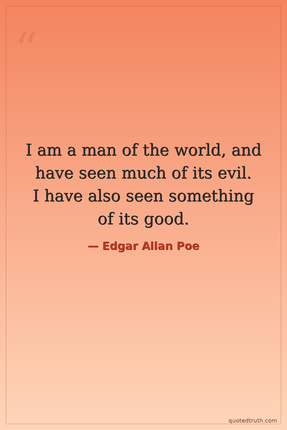 I am a man of the world, and have seen much of its evil. I have also seen something of its good.