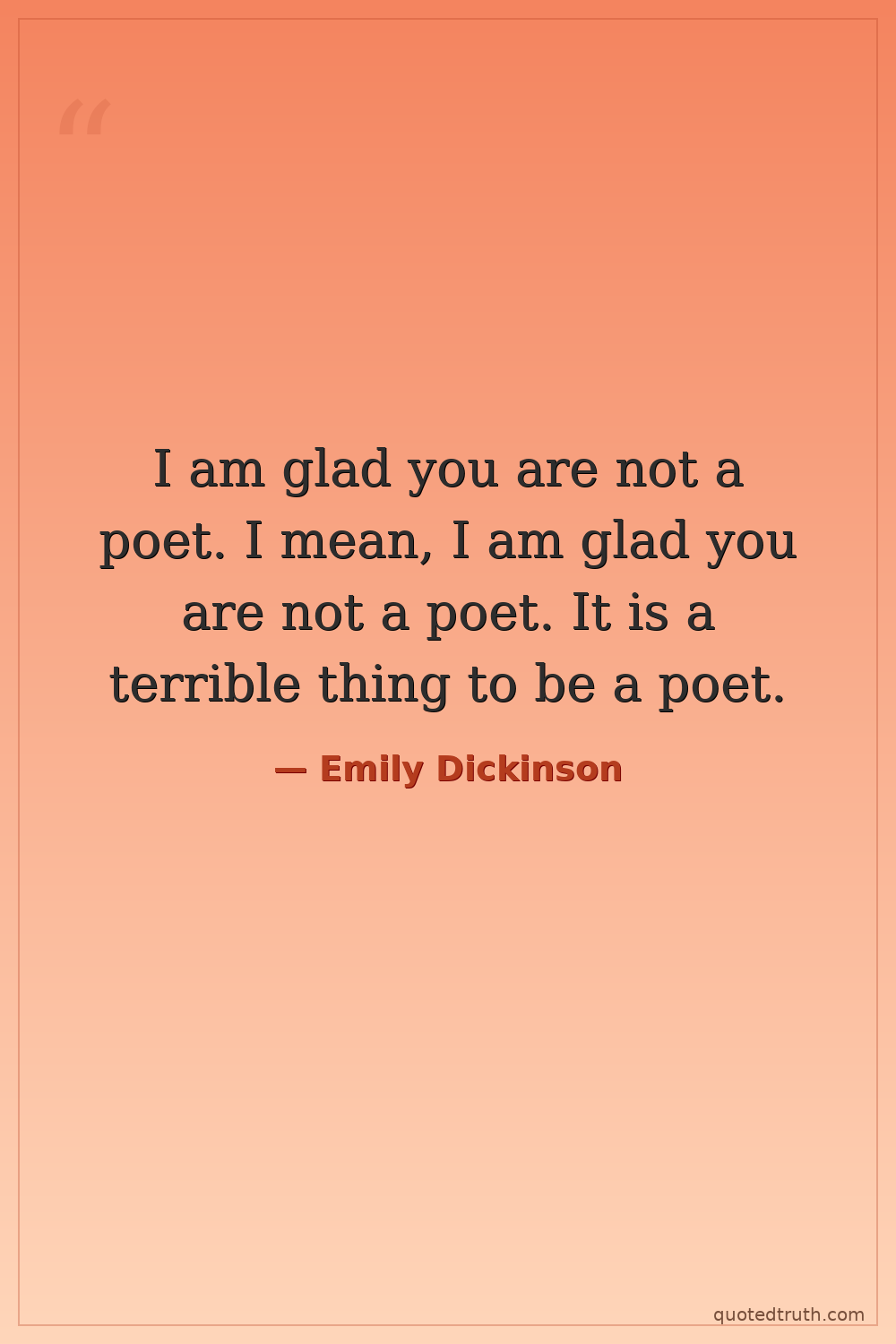 I am glad you are not a poet. I mean, I am glad you are not a poet. It is a terrible thing to be a poet.