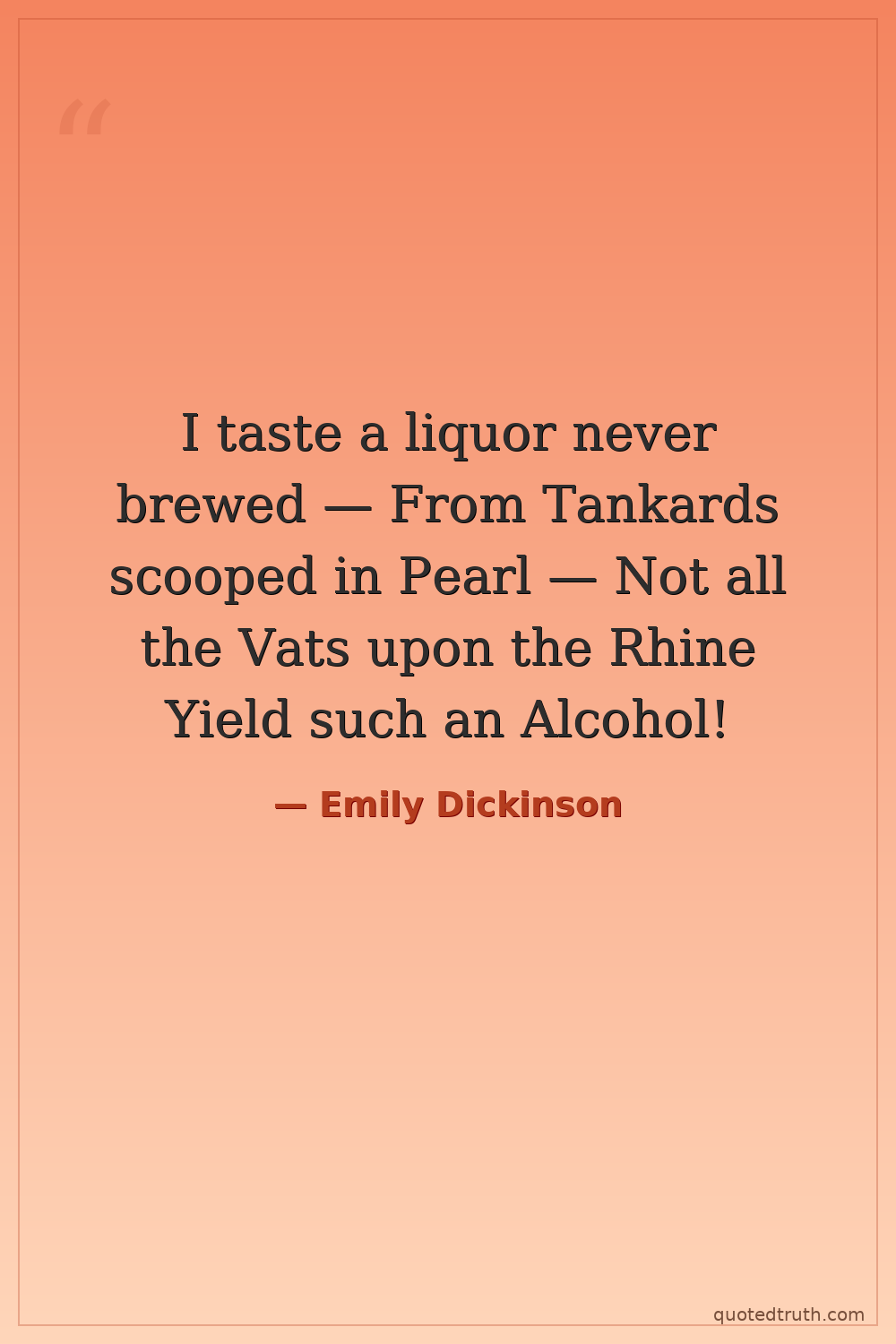 I taste a liquor never brewed — From Tankards scooped in Pearl — Not all the Vats upon the Rhine Yield such an Alcohol!